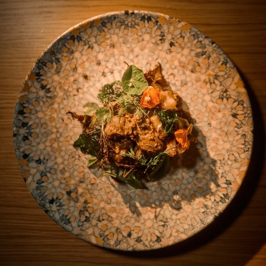 Wild shot rabbit in a Durban style curry with foraged wild herbs. A dish that speaks to where I am from, where I am now. What I believe and who I am.